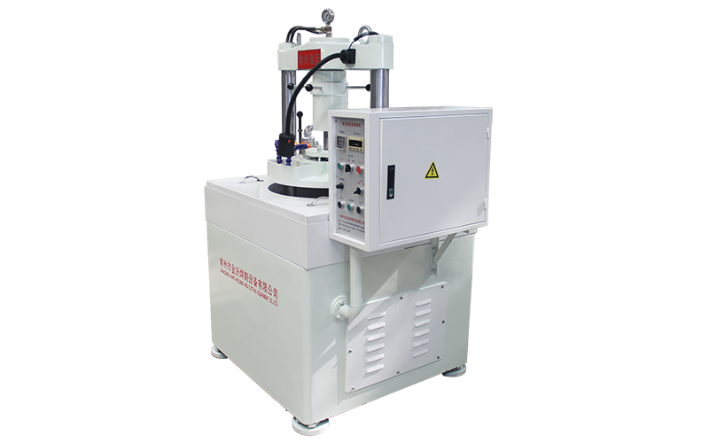 该机床采用立式布局,大循环加工方式;偏心加压,主轴旋转采用交流变频技术,旋转精度高;机床振动性、传动平稳型明显低于其他同类型的研球机,主轴为进口油脂润滑,免维护;机床压女采用液压驱动,机械定压螺母保证,电器系统由PLC机控制;悬臂的按钮站,避免了冷却液的飞溅;主轴和料盘转速为数字显示。